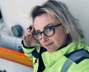 Zaraz po zdobyciu uprawnień jeździłam z kontenerami czyli tzw. bramowcem, ale też od „wielkiego dzwonu” hakowcem, a zdarza się też, że hakowcem z przyczepą z przednią skrętną osią. Kursy miałam lokalne, czyli mogę powiedzieć, że jeździłam „wokół komina”. Nie ukrywam, że przy pierwszych kursach czułam się jak małpa w zoo, bo każdy z niedowierzaniem patrzył, że przyjechała kobieta. Ale też od samego początku czułam wsparcie wśród innych kierowców i kiedy np. nie potrafiłam ściągnąć siatki z kontenera, to nie musiałam nikogo prosić o pomoc, bo sam podszedł jeden pan i pokazał mi, jak to się robi. I szybko się tego nauczyłam, choć nie ukrywam, że przy tej pracy bicepsy bardzo się przydają. Szkoda tylko, że bardzo przy tym cierpiały moje dłonie, bo bynajmniej nie były one zadbane. Dlatego też zaczęłam szukać innej pracy, a moim marzeniem była jazda z cementonaczepą. W końcu dopięłam swego i z „hasiowozu” przesiadłam się na 500-kone Volvo właśnie z taka naczepą. I ujmę to to tak, teraz to jest, cud miód, malinka!