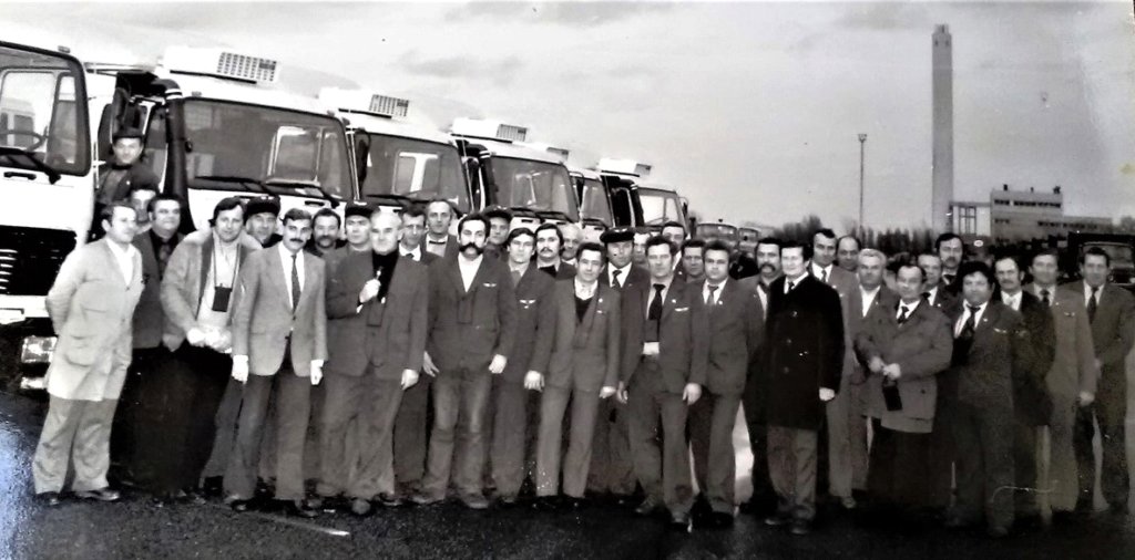 Fot. Odbiór Mercedesów w Wörth – RFN 1981 r. (Ed piąty z lewej) Kierowcą PMPS PEKAES (Przedsiębiorstwo Międzynarodowych Przewozów Samochodowych)...