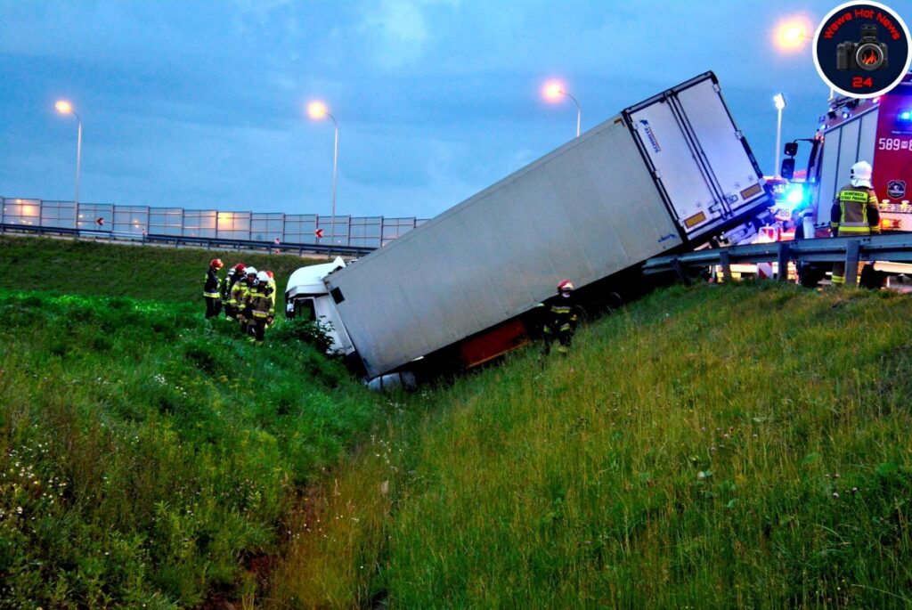 Fot. Wawa Hot News 24 19 czerwca na zjeździe z trasy S8 kierowca ciężarówki nagle stracił panowanie nad pojazdem. Jego...