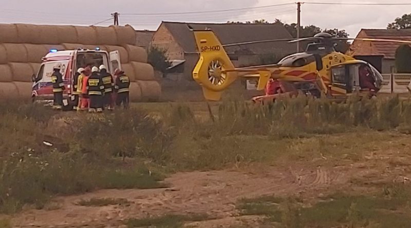 W miejscowości Tuchorza 28-letni kierowca, gdy zakładał plandekę na naczepę wypełnioną trocinami został z niej zdmuchnięty przez silny powiew wiatru...