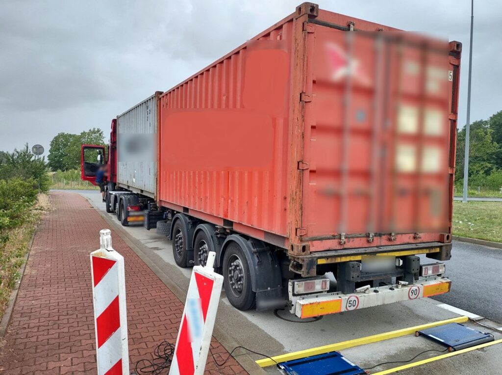 Jadący zestaw z kontenerami, to dla funkcjonariuszy ITD wyraźny sygnał, że z wagą może być coś nie w porządku. I...