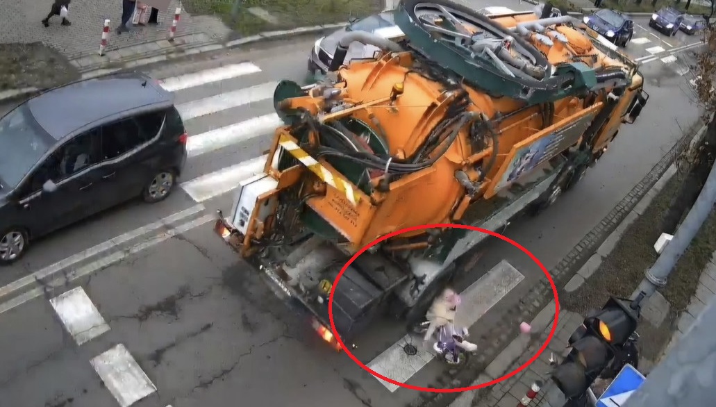 W Legnicy dziecko na rowerze uderzyło w ciężarówkę na przejściu dla pieszych – FILM