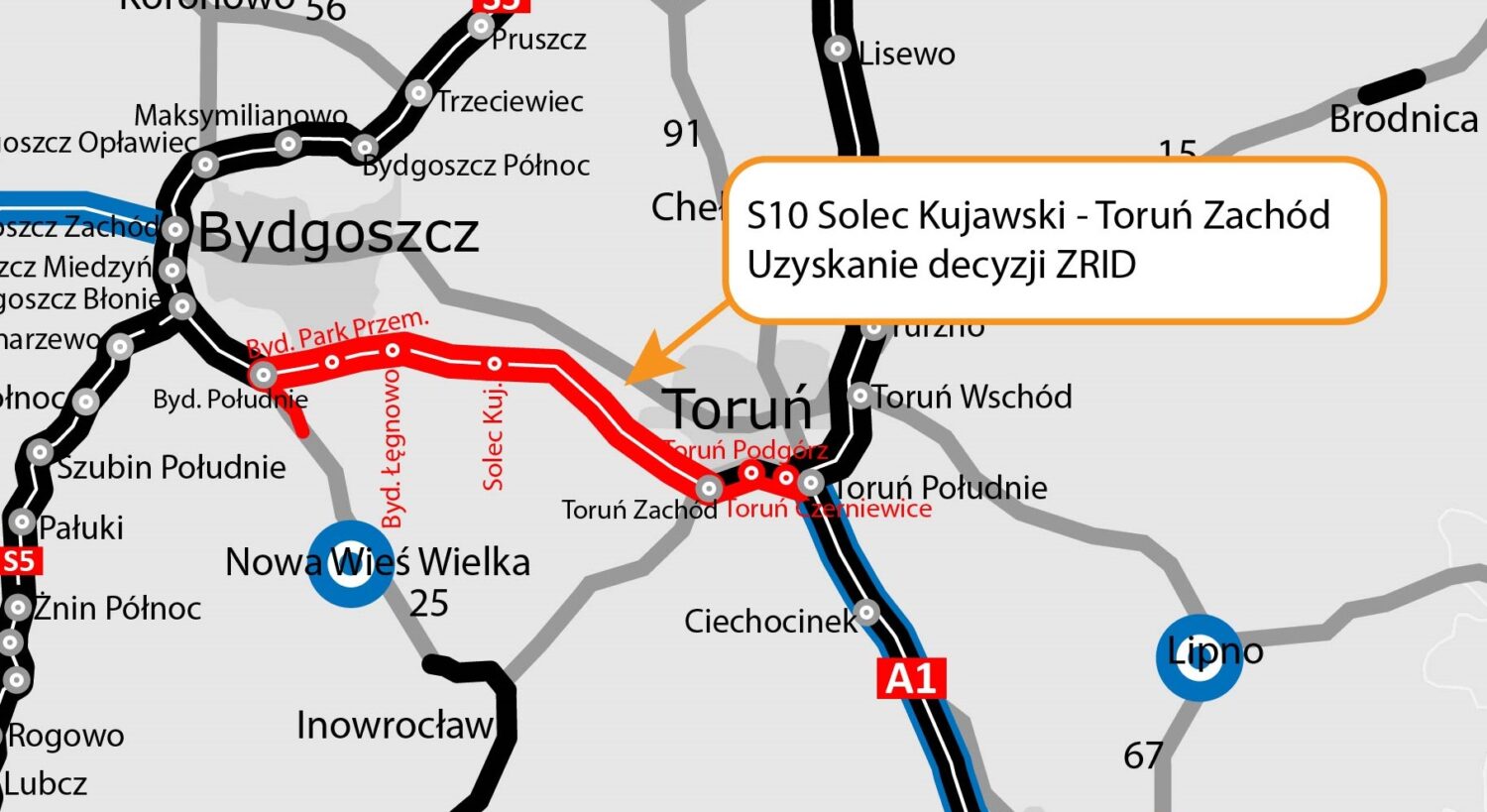 Jak poinformowała Główna Dyrekcja Dróg Krajowych i Autostrad, Wojewoda Kujawsko-Pomorski wydał decyzję zezwalającą na realizację budowy odcinka drogi ekspresowej S10...
