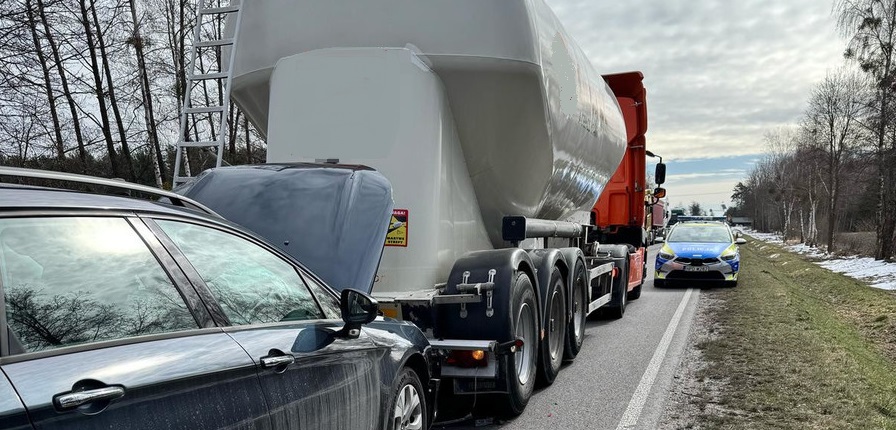 Gdy „poganianie” osobówki klaksonem nie przyniosło efektu, kierowca ciężarówki podjął manewr wyprzedzania