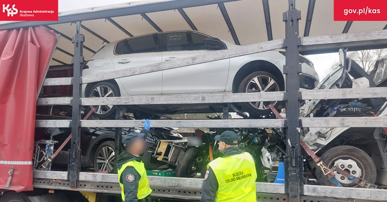 Zamiast używanych aut – spalone wraki i odpady. Nielegalny transport zatrzymany na granicy w Świecku