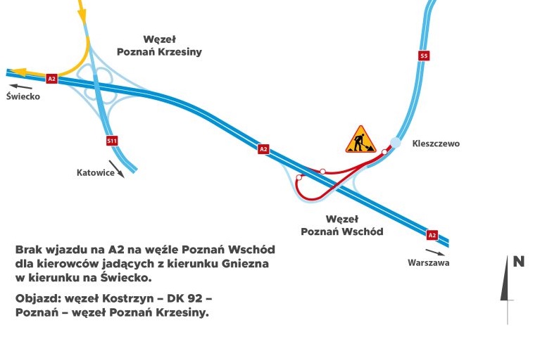 Rozpoczyna się remont nawierzchni na węźle Poznań Wschód – zmiany w organizacji ruchu od 17 maja