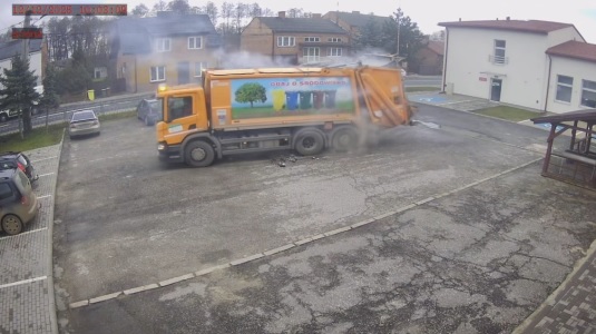 Zapaliła się śmieciarka. Kierowca nie czekał na straż – sam podjechał pod remizę