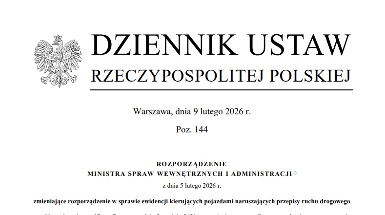W Dzienniku Ustaw z dnia 9 lutego 2026 r., w pozycji 144, opublikowano rozporządzenie Ministra Spraw Wewnętrznych i Administracji z...