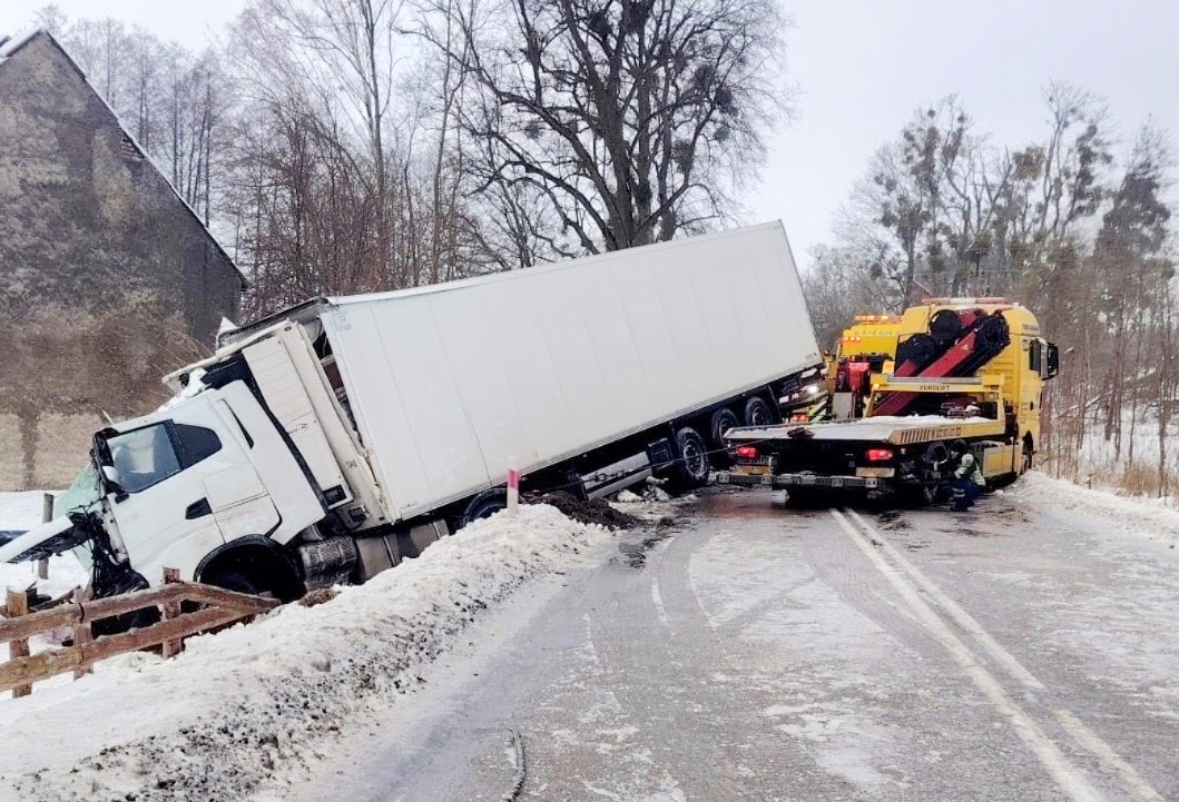 Na trasie Ruciane-Nida – Ukta w powiecie piskim kierujący zestawem najprawdopodobniej nie dostosował prędkości do panujących warunków....