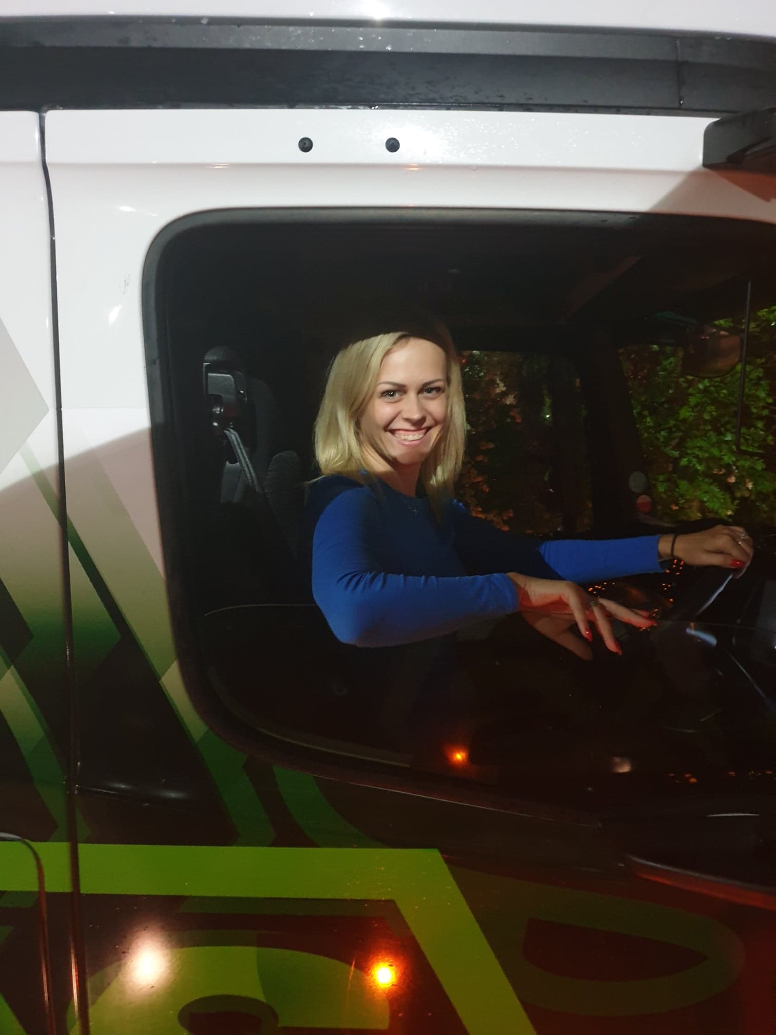 W końcu musiałam zdecydować się na pracę, do której obiecałam sobie, że nie pójdę. Po 4 miesiącach od zrobienia uprawnień, więc nie miałam wyjścia, bo czas uciekał Niestety, tylko oni dali mi szansę na start. Ciężarówki w Tesco to były Scanie i Mercedesy. Byłam tam nie tylko kierowcą, ale i magazynierem rozładowując sama towar z naczep. Obiecałam sobie, że pójdę najwyżej na 3 miesiące, niestety przez sytuację z pandemią zostałam 8. Ostatnio jednak udało mi się zmienić pracę i to całkiem przypadkiem, w jeden dzień oferta spadła z nieba. Super firma, fajne pieniążki i co najważniejsze jestem teraz prawdziwym kierowcą.