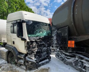 Kierujący Działaniami Ratowniczymi przekazał informację, że zarówno kierowca pojazdu ciężarowego oraz maszynista nie zgłaszają żadnych dolegliwości. Dodatkowo stwierdzono brak wycieków przewożonych cieczy.