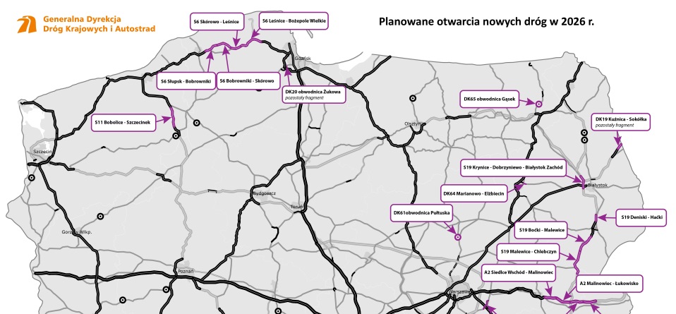 Na 2026 rok przewidziano udostępnienie kierowcom blisko 290 km nowych dróg, w tym fragmentów autostrad, dróg ekspresowych oraz obwodnic w...