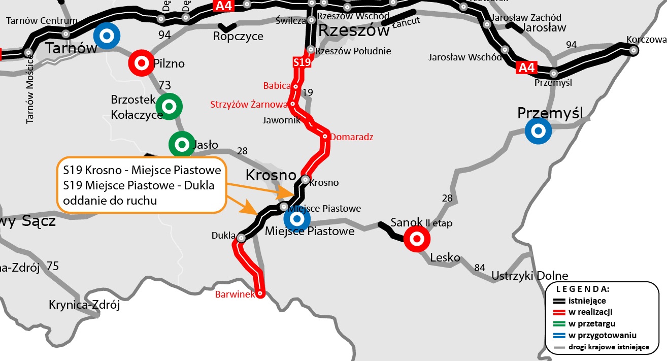 GDDKiA poinformowała o udostępnieniu kierowcom dwóch nowych odcinków drogi ekspresowej S19: Krosno – Miejsce Piastowe oraz Miejsce Piastowe – Dukla....