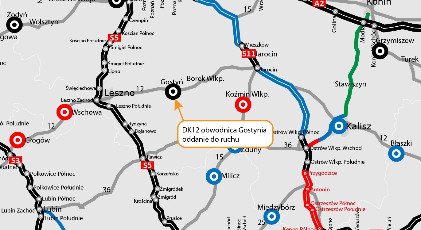 12 grudnia GDDKiA udostępniła ponad 17 km nowej drogi DK12, wyprowadzając ruch tranzytowy, w tym ciężarowy, poza centrum Gostynia i...