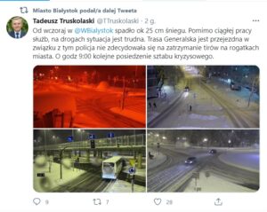Dziś na godzinę 9.00 prezydent Białegostoku zwołał posiedzenie sztabu kryzysowego, aby omówić sytuację po nocy i po porannych godzinach szczytu. Wtedy też będą podejmowane kolejne, niezbędne decyzje.