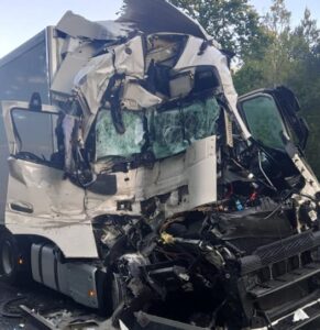 Wczoraj, 14 czerwca doszło do kolizji dwóch ciężarówek na DK 74 w miejscowości Korablew w gminie Rusiec. Na zestaw, który zatrzymał się za kilkoma pojazdami, które stały na jezdni z uwagi na sygnalizację świetlną ustawioną w związku z robotami drogowymi najechała druga ciężarówka, której kierowca nie zdążył wyhamować. Mimo że zdarzenie wyglądało na bardzo poważne, żaden z kierowców w nim nie ucierpiał.
