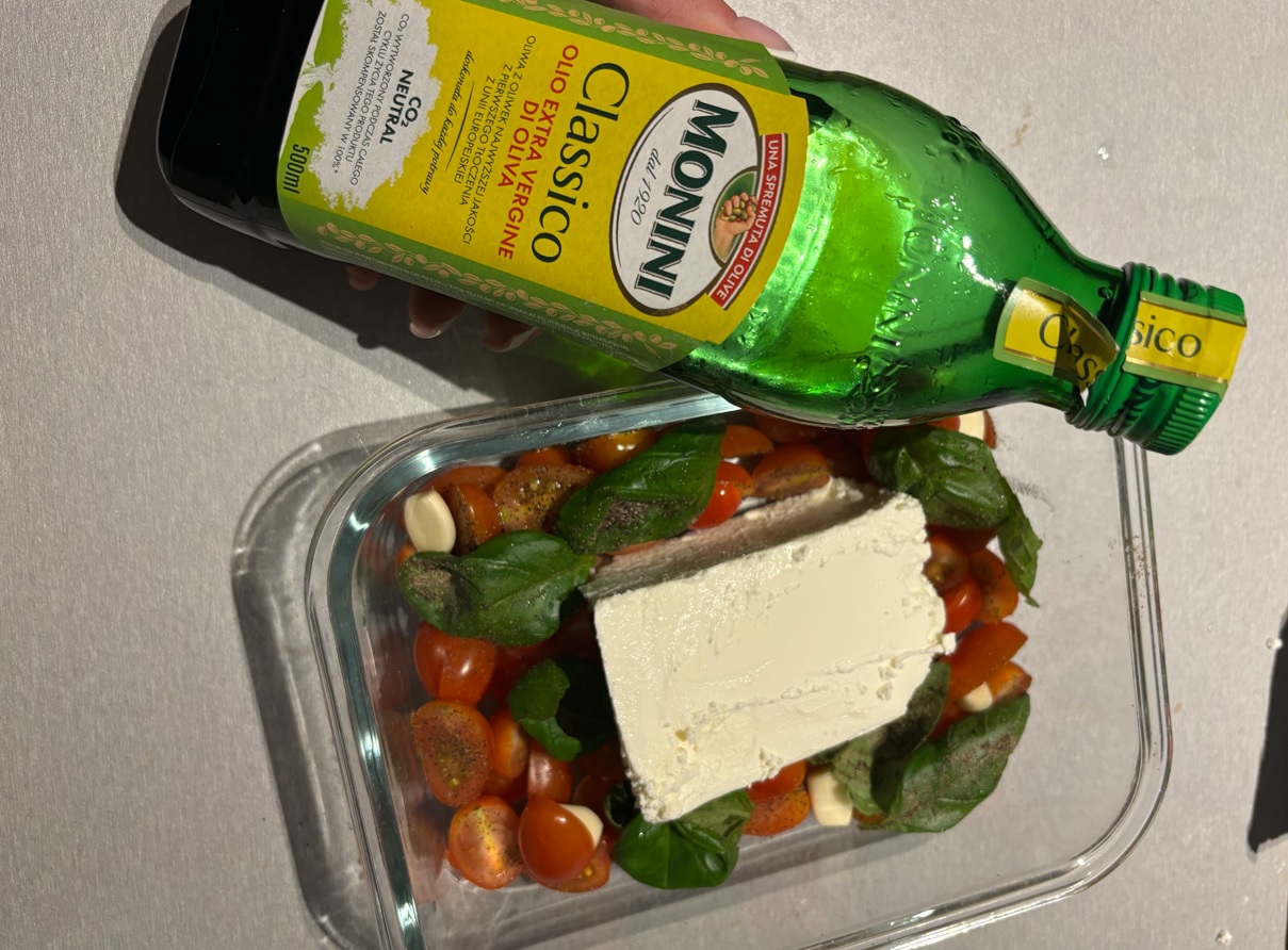- Skrop całość oliwą z oliwek i posyp ulubionymi ziołami. Dodaj sól i pieprz do smaku.