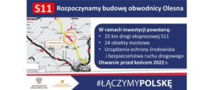 Początek nowej drogi ekspresowej będzie zlokalizowany na istniejącej drodze krajowej nr 11 w pobliżu Kolonii Ciarki, a koniec na granicy województw opolskiego i śląskiego, w pobliżu miejscowości Łomnica. Docelowo dwujezdniowa obwodnica Olesna, z dwoma pasami ruchu w każdym kierunku i nośności 11,5 t/oś, zostanie połączona z sąsiednimi odcinkami ekspresówki. Dla fragmentu od końca obwodnicy Kępna do początku obwodnicy Olesna trwa procedura uzyskania decyzji środowiskowej. Z kolei dla odcinka od obwodnicy Olesna w kierunku Lublińca i Tarnowskich Gór opracowywane są możliwe warianty przebiegu.