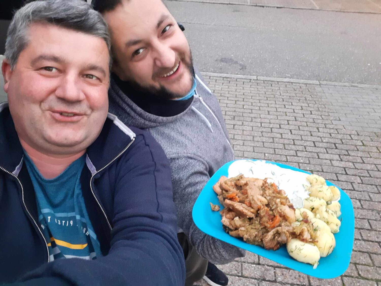 Nie ukrywam, że na parkingach wzbudzam zainteresowanie tym co robię, a że zazwyczaj gotuję duże porcje nie raz kogoś zaprosiłem do stołu. Miałem też nawet kiedyś taki przypadek pod Hanowerem, że spotkałem dwóch Polaków, którzy jeździli u „Niemca” na międzynarodówce. Akurat wtedy na pace robiłem ziemniaki pieczone przez niektórych zwane „duszonką”, tyle że tak na bogato, bo z „pałkami” z kurczaka i burakami. Podchodzą i pytają, co tak pachnie? Mówię im, by przyszli za 15 minut to się sami przekonają, bo garnek był naprawdę spory. I rzeczywiście za chwilę jeden przyszedł z salaterką więc mu nałożyłem porcję, z którą poszedł do siebie. Za chwilę podbiega dwóch, wciskają mi za koszulkę 10 euro i proszą jeszcze o dwie porcje i przepis. Ale zjawił się następny, który położył 20 euro i powiedział, że zabiera garnek i odda go, jak umyje. Dobrze, że sobie nałożyłem wcześniej, bo bym się obszedł smakiem.