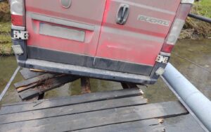POD „DOSTAWCZAKIEM” ZAŁAMAŁY SIĘ DREWNIANE BELKI NA MOŚCIE