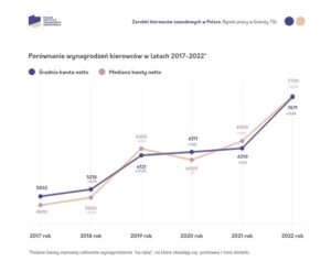 - pomimo zawirowań gospodarczych w 2022 roku, średnia pensja netto kierowców wzrosła o 21,6% w stosunku do roku poprzedniego;