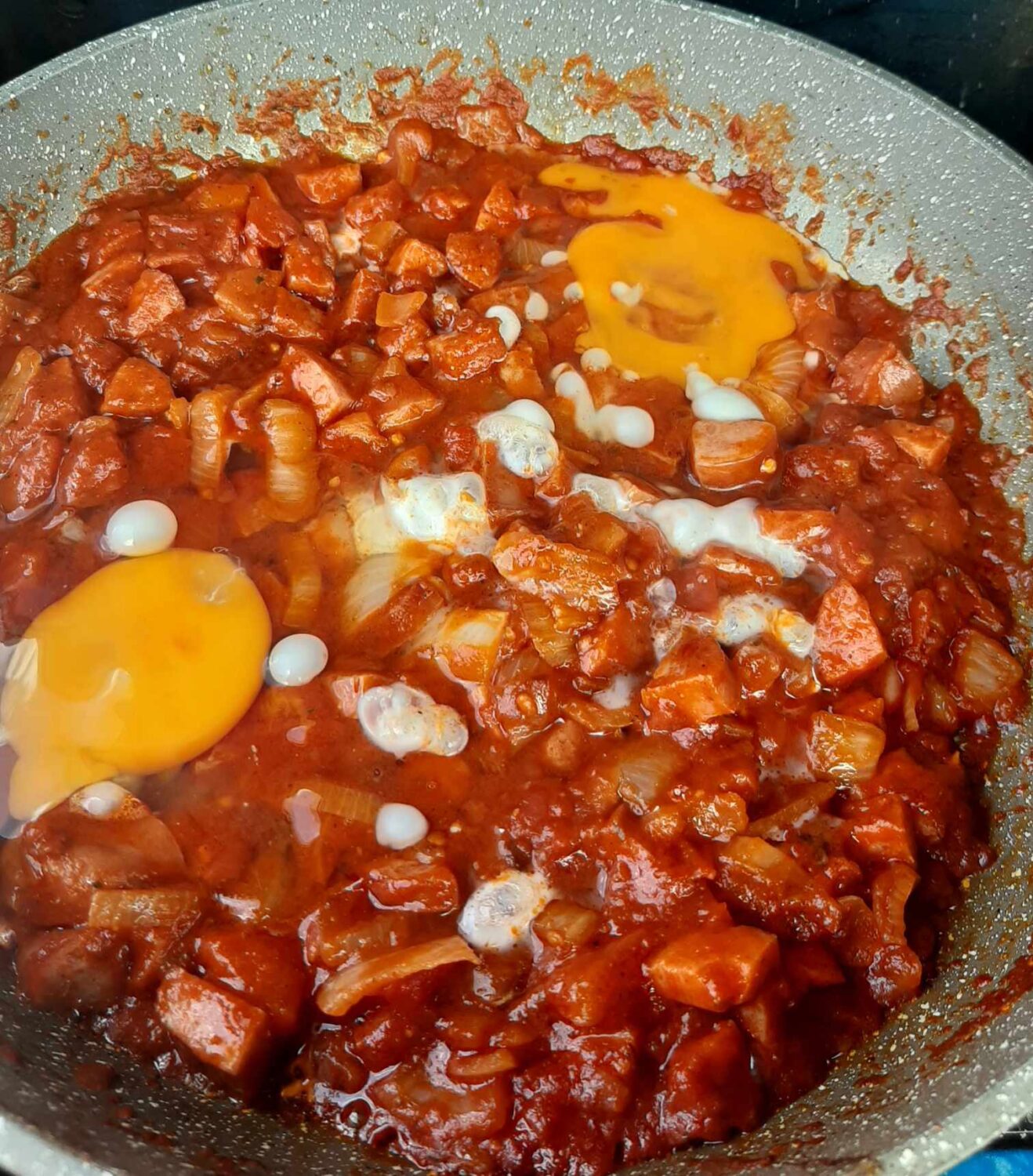 - gdy trochę odparuje dodaje 2 jaja i przykrywam