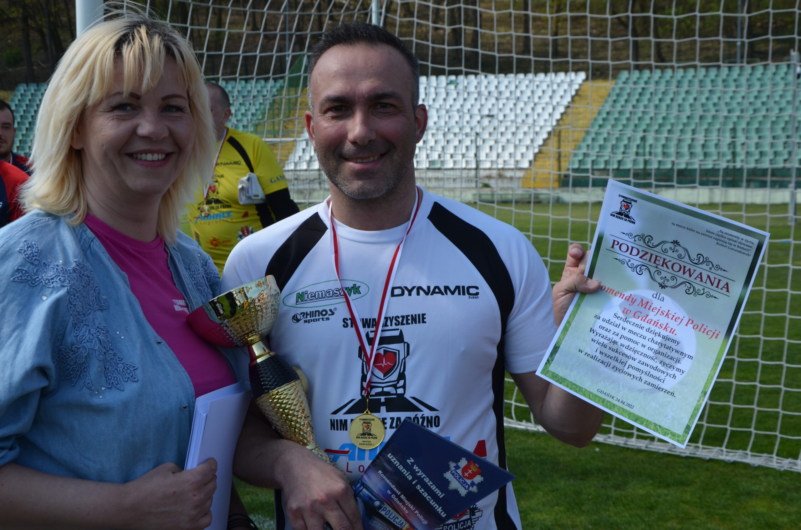 Za sprawą Stowarzyszenia „Nim będzie za późno” na murawie pojawiły się drużyny kierowców zawodowych i funkcjonariuszy policji. Wynik meczu był wręcz nieprawdopodobny, ale nie o to w tym spotkaniu chodziło, choć trzeba zaznaczyć, że policja wygrała bardzo wysoko… Liczył się natomiast szlachetny cel, czyli zbieranie środków na szkolenia dla kierowców zawodowych z udzielania pomocy przedmedycznej w wypadkach drogowych.