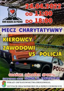 Tym razem chodzi o charytatywny mecz reprezentacji policji i kierowców zawodowych, który będzie połączony z rodzinnym piknikiem. W czasie wydarzenia zostaną zbierane środki na szkolenia dla kierowców zawodowych z udzielania pierwszej pomocy przedmedycznej w wypadkach drogowych.
