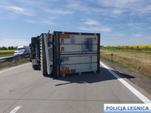 Dzień wcześniej na 98 km autostrady A4 w kierunku Legnicy kierujący samochodem ciężarowym wraz z naczepą, jadąc od strony Wrocławia w kierunku Legnicy, na wysokości miejscowości Legnickie Pole zasnął za kierownicą. Następnie gdy uderzył w barierę energochłonną po prawej stronie jezdni, gwałtownie odbił w lewo wskutek czego stracił panowanie nad prowadzonym przez siebie zespołem pojazdów, który wywrócił się na prawą stronę uderzając w barierę dzielącą jezdnie. Przewrócony pojazd zablokował obydwa pasy ruchu w kierunku granicy i jeden pas ruchu w kierunku Wrocławia.